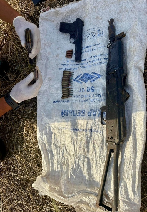 Тайник с оружием был обнаружен вблизи горной местности села Прохладное Таш-Мойнокского айылного аймака. В ходе оперативных мероприятий изъяты: