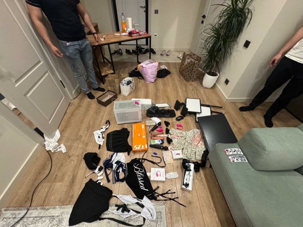 Уюшкан кылмыштуу топтун мүчөлөрү өздөрүнүн мыйзамсыз иштерин жашыруу максатында Бишкек шаарынын ар кайсы аймактарынан батирлерди ижарага алып келишкени аныкталган. Аталган аймактарда ыкчам тинтүү иштери жүргүзүлүп, алардан веб-камералар, жарык берүүчү жабдуулар, компьютердик жабдуулар жана башка техникалык жабдуулар, эротикалык кийимдер жана атрибуттар, ошондой эле сексуалдык мүнөздөгү ачык-айкын онлайн көрсөтүүлөрдү жүргүзүү үчүн арналган оюнчуктар табылып, алынган.