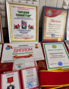 Махабат Турдакунова маданиятты өнүктүрүүдөгү эмгектери жана коомдук иштерге активдүүлүгү үчүн бир нече жолу “Ардак Грамота”, “Диплом”, “Ыраазычылык кат”, “Биздин таланттар”, “Жылдын мыкты ырчысы”, “Мактоо баракчасы”, “Жылдын мыкты өнөр адамы” наамдары жана “Ак элечек даткайым” медалы менен сыйланган. Ошондой Жумамүдүн Шералиевдин ырларын мыкты аткаргандыгы үчүн атайын “Төш белги” медалы, “Сахна ажары”, “Сахна жылдызы” сыйлыктары менен сыйланган.